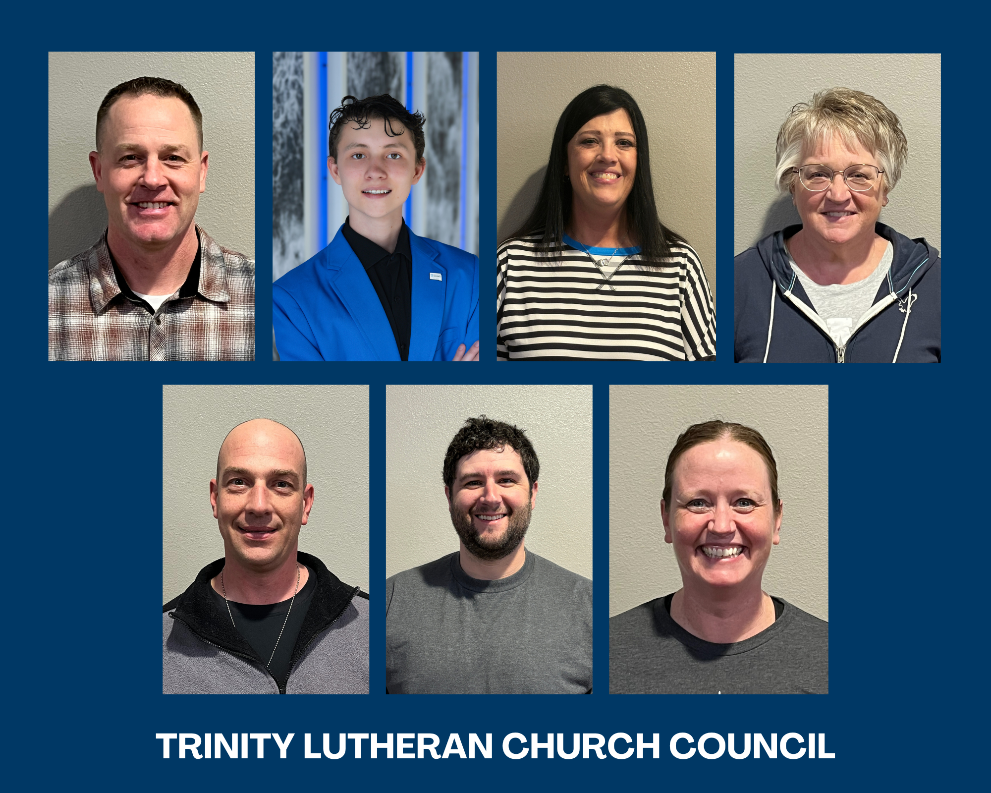 Board of Property: Cory Slykhuis, Youth Representative: Jaxon Johanneson, Board of Worship and Music: Patti Goehring, Board of Youth and Family: Brenda Jenner, Board of Outreach: Ryan Robinson, Board of Stewardship: Jake Jensen, Board of Education: Sara Hilmoe.